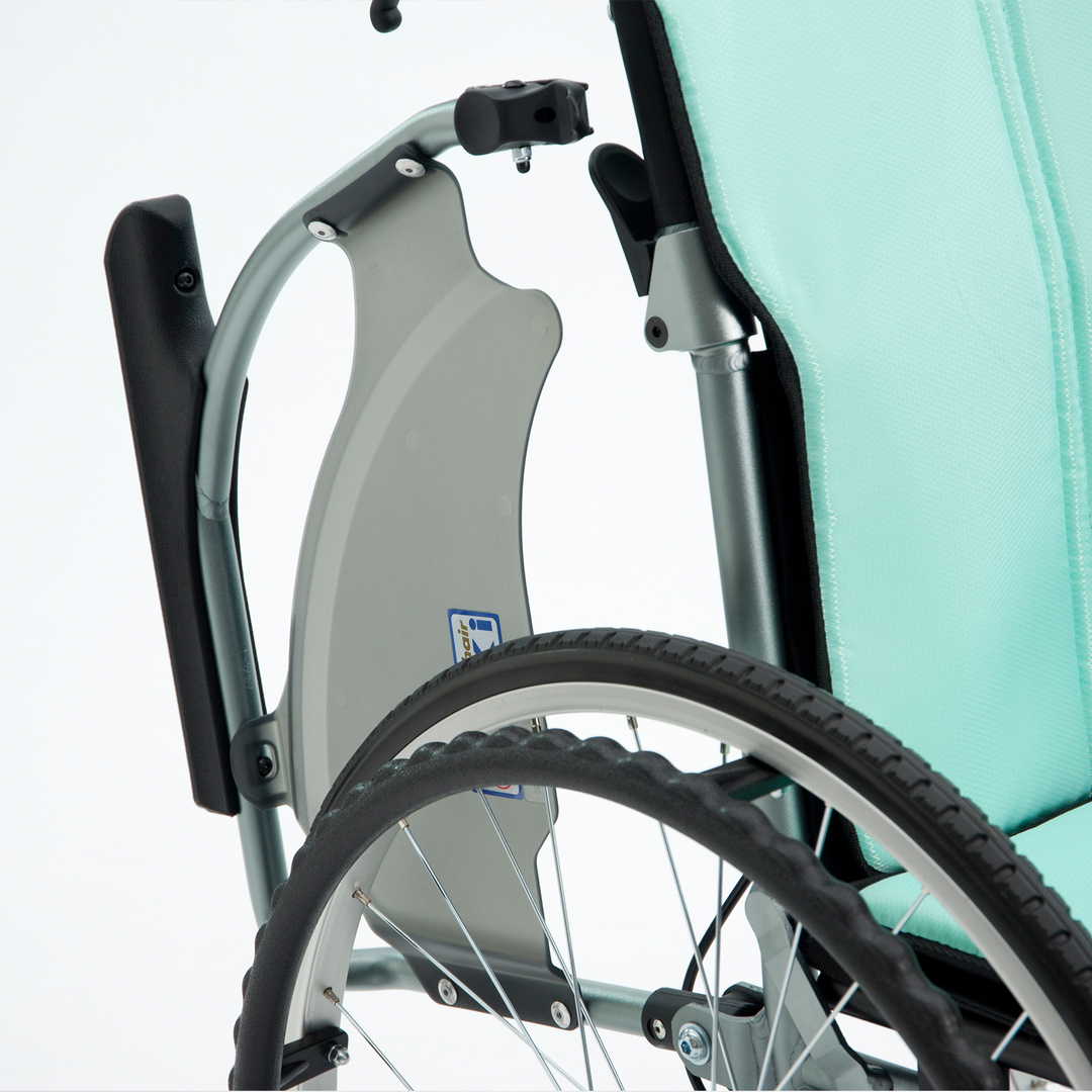 Flip-up armrests, removable leg rests, and a foldable back aluminum wheelchair.